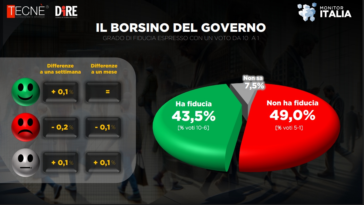 Sondaggio Dire-Tecnè: cresce al 43,5% la fiducia nel governo