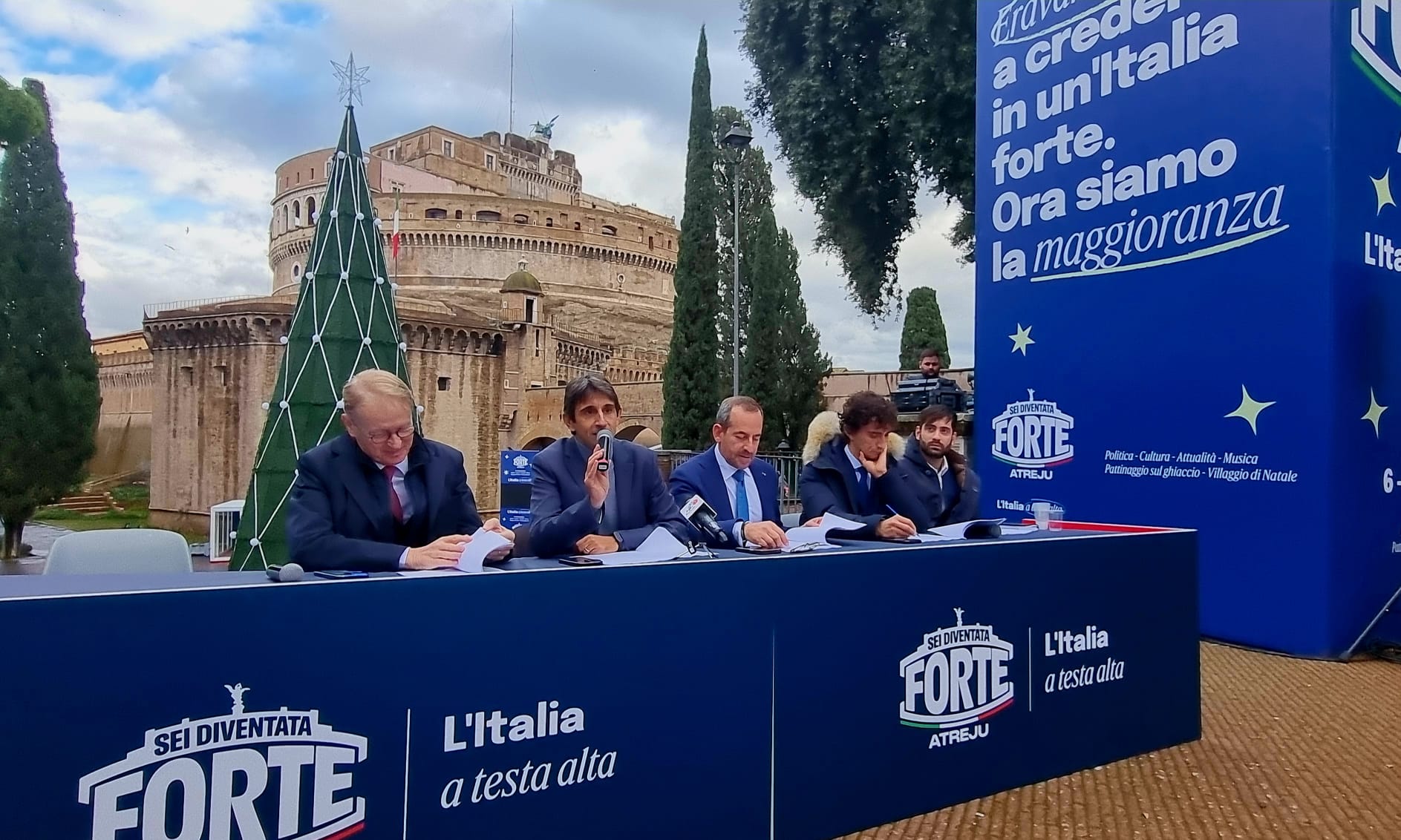 ROMA – Prende il via sabato 6 dicembre nei giardini di Castel Sant’Angelo a Roma “Atreju 2025”. “Sei diventata forte – L’Italia a testa alta” è il titolo di quest’anno, che “simboleggia la solidità e l’autorevolezza acquisita dall’Italia con il lavoro portato avanti dal governo di centrodestra guidato da Giorgia Meloni”.Il programma dell’edizione più lunga di sempre è stato presentato questa mattina dal responsabile organizzazione di Fratelli d’Italia Giovanni Donzelli, il presidente di Gioventù nazionale Fabio Roscani, i capigruppo di Camera e Senato Galeazzo Bignami e Lucio Malan, il responsabile del programma Francesco Filini e il responsabile comunicazione Andrea Moi.Il taglio del nastro ci sarà sabato 6 alle ore 15. La festa resterà aperta tutti i giorni ad ingresso gratuito fino a domenica 14 dicembre, giornata di chiusura con il consueto intervento finale di Giorgia Meloni, che sarà preceduto da quelli dei vicepremier Matteo Salvini e Antonio Tajani, dei leader di Noi Moderati e Udc, Maurizio Lupi e Lorenzo Cesa e del presidente di Gioventù nazionale Fabio Roscani.