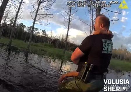 A prendere il piccolo con sé, in braccio, e a dargli un primo caldo abbraccio è stato il vice sceriffo della contea di Volusia, Wes Brough che lo ha riportato sulla terraferma, dalla sua famiglia. Il video diventato virale è stato condiviso dall’ufficio dello sceriffo della contea di Volusia e mostra la polizia che perlustra la zona alla ricerca di Coco, poi il suo avvistamento in acqua dall’elicottero. Il bambino è stato recuperato infreddolito ma era illeso, ha riferito la polizia.