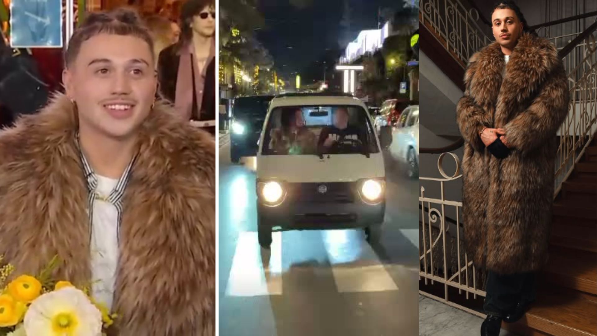 Si è infatti visto atterrare all’Ariston a bordo di un mezzo molto alternativo, un furgoncino letteralmente scassato, che lui stesso ha documentato sulla sua pagina Ig. Ma la scelta del suo look non è stata ugualmente cheap. Il 27enne infatti sul green carpet davanti al teatro ha sfoggiato un coordinato all’insegna di lusso, pelliccia e gioielli. Proprio questi ultimi, una collana, orecchini e bracciale in oro giallo e diamanti non sono passati inosservati. Farebbero parte della collezione Tiffany Titan, come riporta il quotidiano Repubblica.