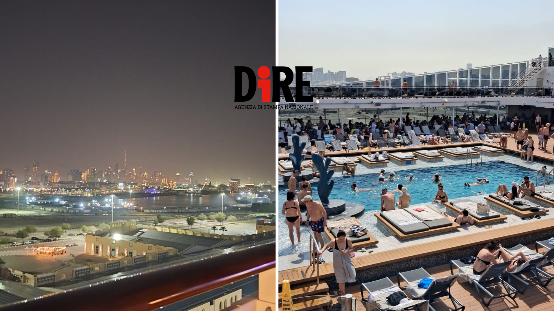 ROMA – Sono oltre 550 gli italiani bloccati a bordo della nave da crociera MSC Euribia nel porto di Dubai, fermi da sabato scorso in quella che alcuni passeggeri definiscono ormai una “prigione dorata”. Tra loro c’è Giorgio, 48 anni, originario della provincia di Cosenza, che racconta alla Dire le ore di attesa e incertezza vissute insieme alla moglie e ai due figli piccoli.
