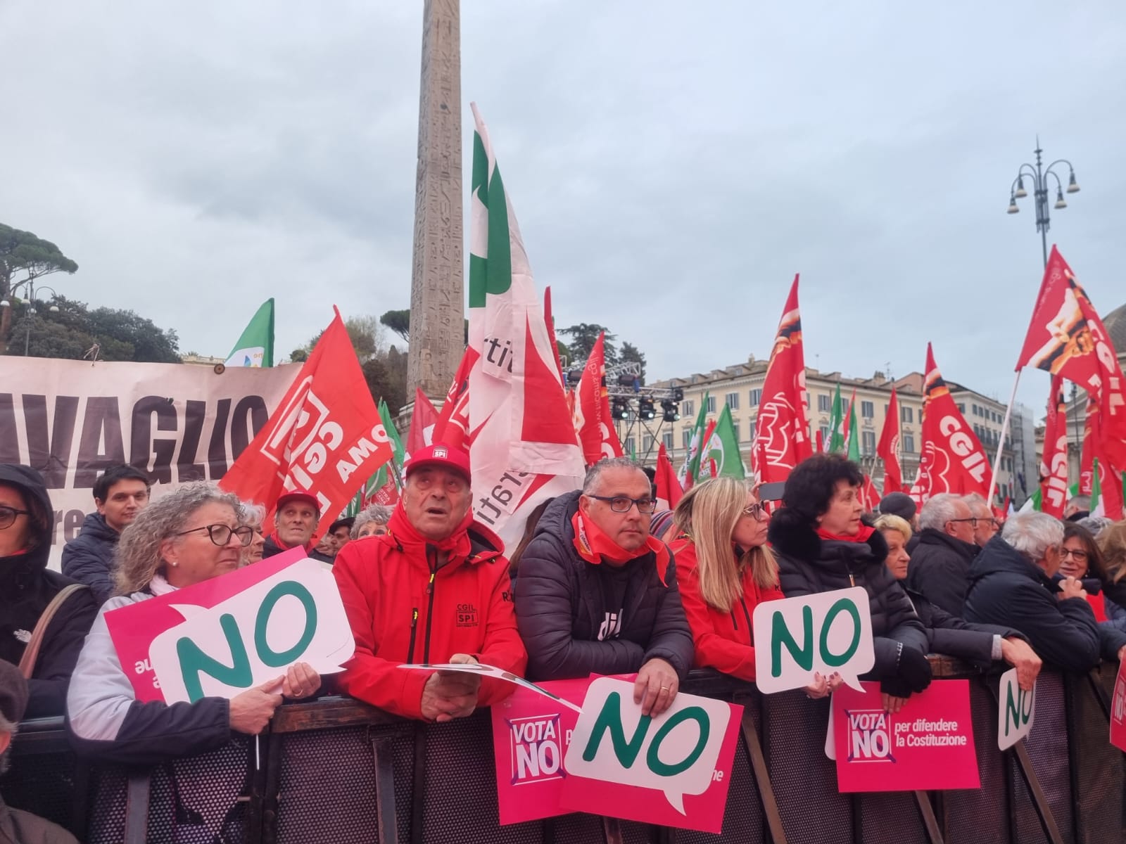 ROMA – Il popolo del no alla riforma della giustizia si è radunato in piazza del Popolo a Roma. Tante bandiere rosse: Cgil, Avs, Pd.