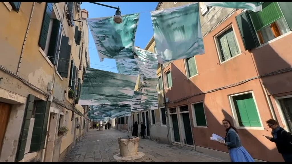 Venezia, 30 apr. (askanews) – La strada è celebre per i panni stesi e per quel senso di verità del luogo che a Venezia è a rischio tanto quanto gli ecosistemi lagunari e Melissa McGill, artista newyorchese con un forte legame con il capoluogo veneto, ha scelto di usare proprio quell’estetica per il progetto di arte pubblica “Marea”, allestito fino al 10 maggio a Corte Nova a Castello.”Sono sempre stata molto ispirata da Corte Nova – ha detto l’artista ad askanews – perché ha ancora un cuore veneziano ed è pieno di persone che risiedono lì da molti anni. E oggi io vorrei unire e celebrare questa comunità attraverso questa opera e usare il mio ruolo di artista per dare vita a uno spazio molto creativo nel quale possiamo collaborare e celebrare la loro presenza”.Le grandi lenzuola occupano la strada, formano un cielo d’acqua che è profondamente veneziano e, complice il vento, creano un movimento che è fisico, ma anche metaforico, e ci riporta alla potenza naturale dei luoghi e all’intensità dello spazio mentale che ci permettono di avere.”Ho usato tantissima acqua per dipingere, è proprio una conversazione con l’acqua – ha aggiunto Melissa McGill – si vedono i disegni, i gesti, i colori che ho studiato, quindi passa l’energia della Laguna, ma si parla anche di cambiamenti climatici, di moto ondoso, di turismo di massa. E quindi nel progetto ci sono anche tutti questi temi”.Il progetto prevede anche una mostra, poco distante da Corte Nova, nella galleria 10 & zero uno, che, in collaborazione con Mazzoleni, ospita una serie di altre opere dell’artista sempre ispirate al tema dell’acqua, come il progetto Red Regatta, che ha visto l’arte di Melissa McGill letteralmente attraversare la Laguna. E questo legame oggi si rinsalda.